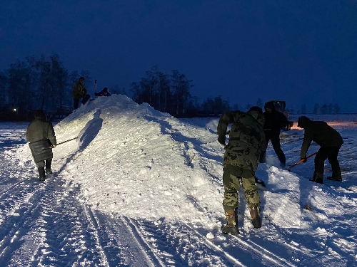Жители микрорайона Черёмушки в районном центре возводят горку 28.12.21 6:58