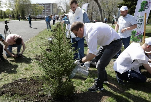 Алексей Текслер посадил дерево в честь фронтовика 08.05.21 13:08