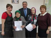 Глава Нагайбакского района вручил двум пенсионеркам уведомление на получение субсидий